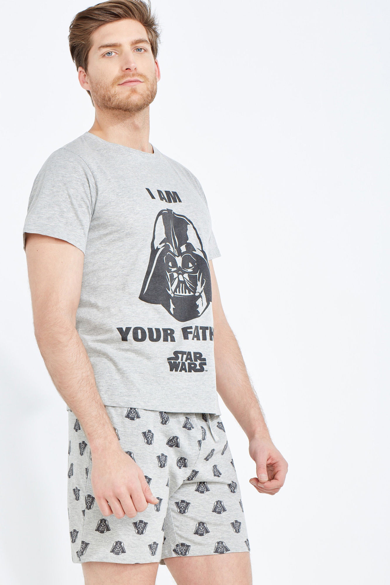 Em tons de cinza e cores básicas, há um pijama para ela com a inscrição “Princess Leia” na frente ou, para ele, com a imagem de Darth Vader, a conhecida frase “I am your father”.